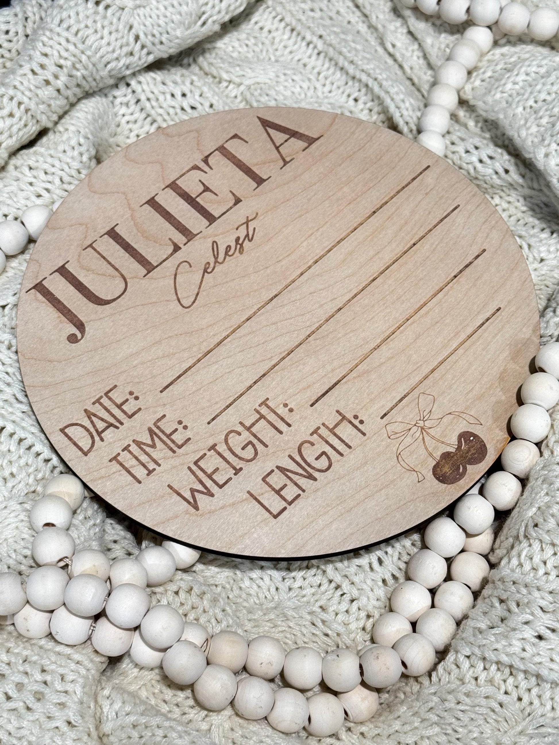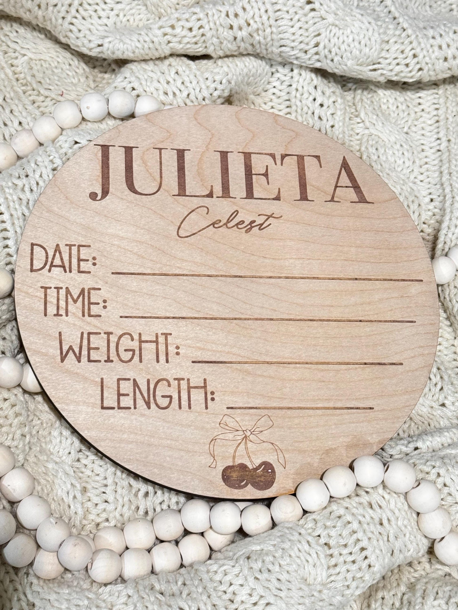Birth Statistics around perfect for a newborn. The perfect hospital picture prop that can be re used for the baby nursery. Need a custom order? Let us know!
