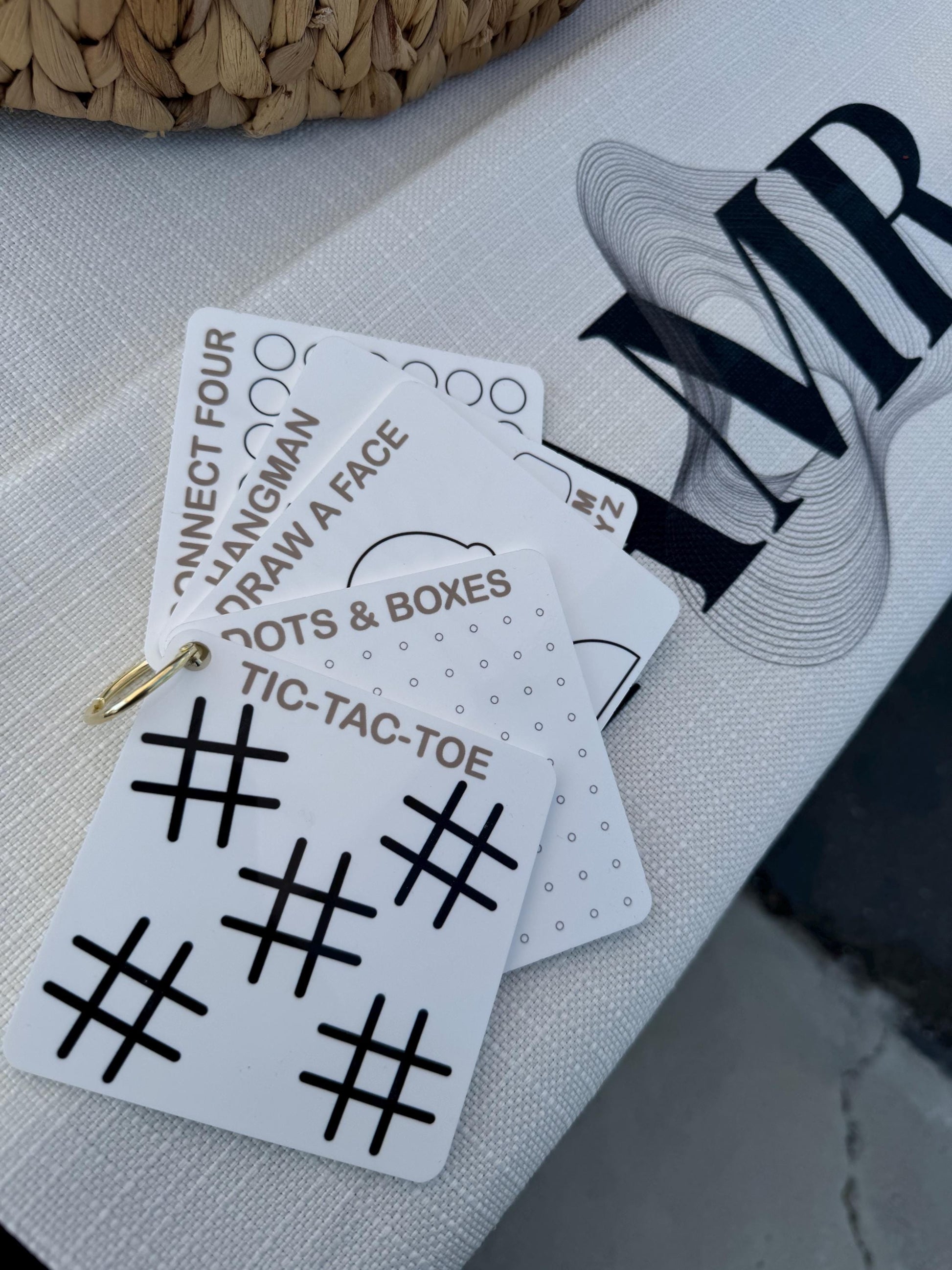 Don’t let your kids get bored in the car. Take these travel games with you everywhere you go. They’re about 4” in size and can fit in a purse/backpack or in the pockets of your car. All games include a dry erase marker