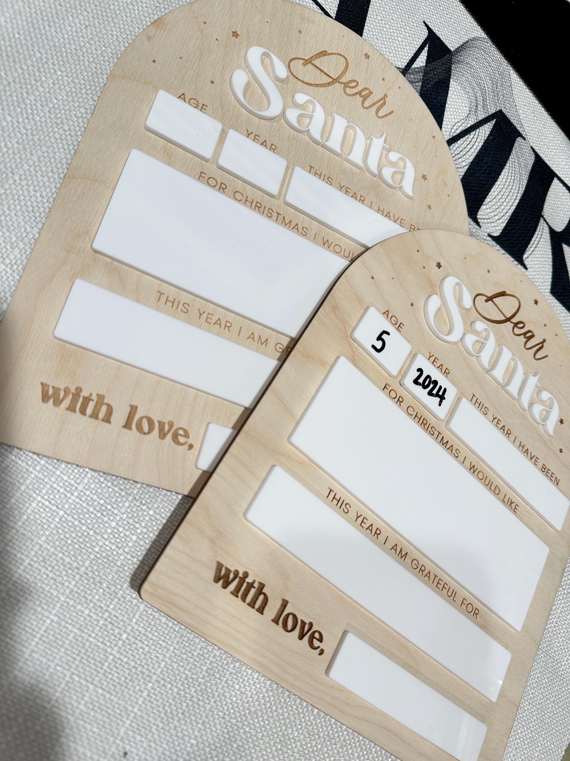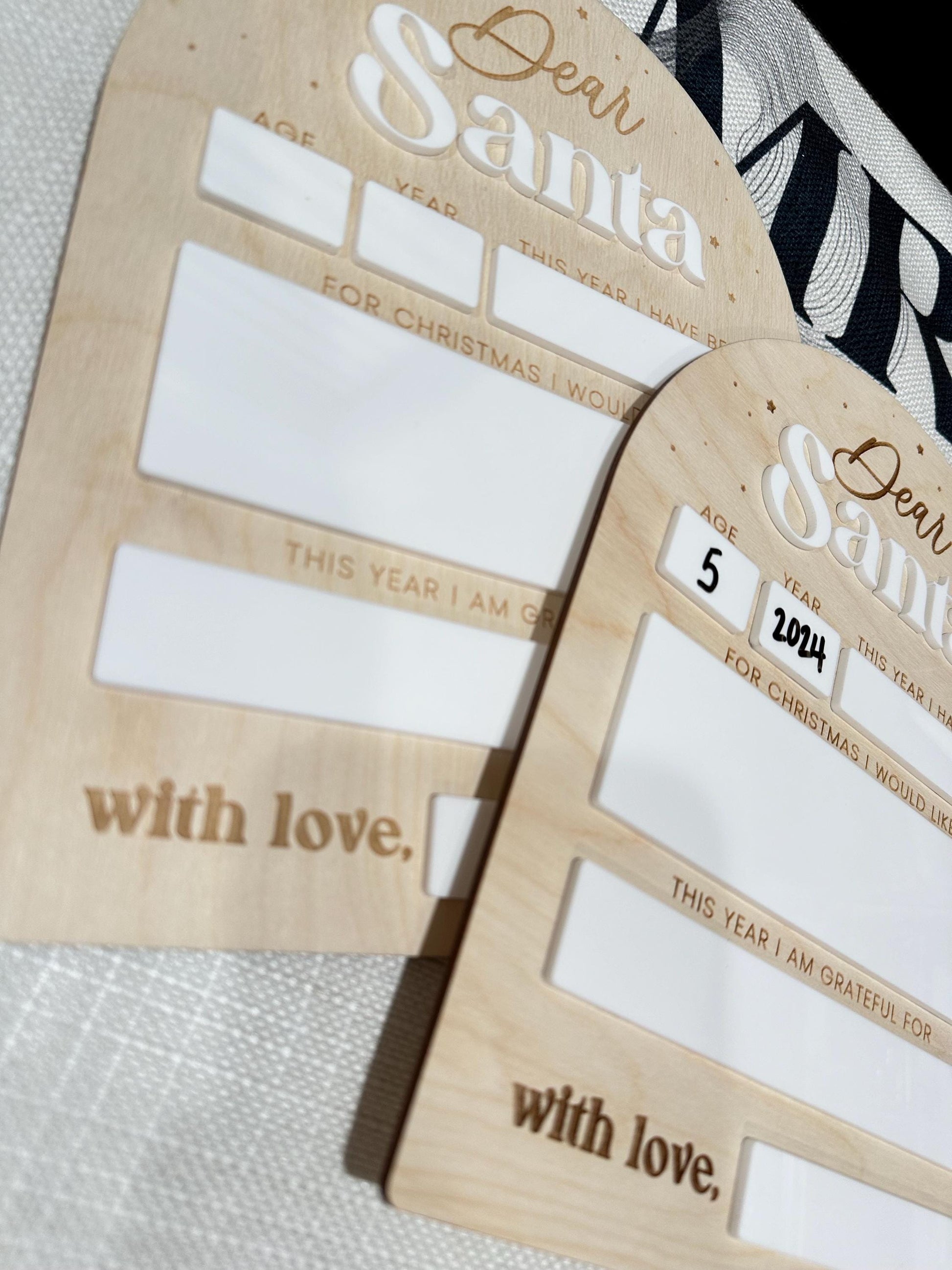 A letter to Santa that can be re used over the years. Dry erase marker is included with purchase, only use dry erase markers for this board.