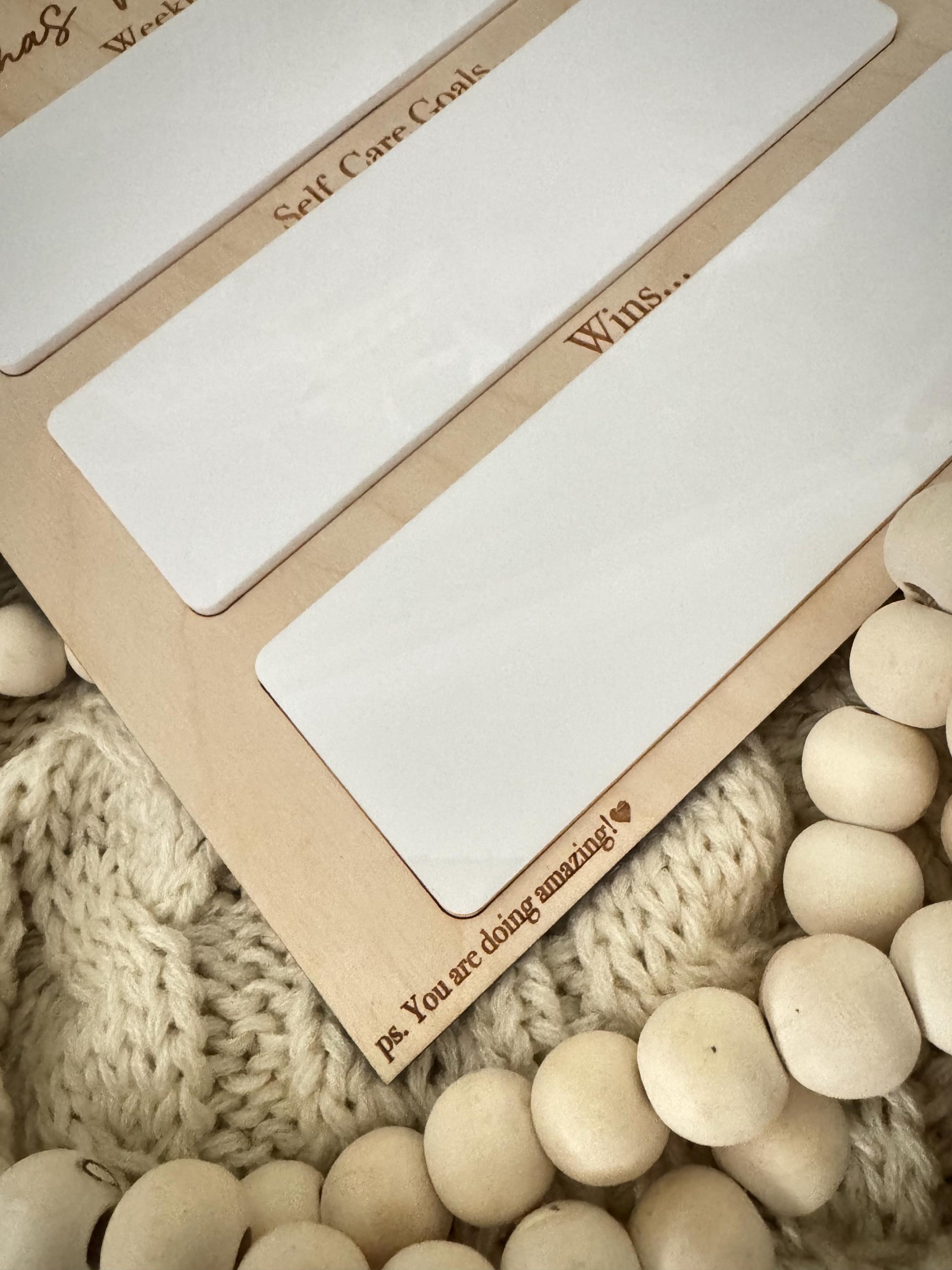 A board to help you set goals, write down your daily wins, and positive affirmations. Featured a “you’re amazing” quote on the bottom to keep you motivated. Board is magnetic and can be placed on fridge. All boards come with magnetic marker