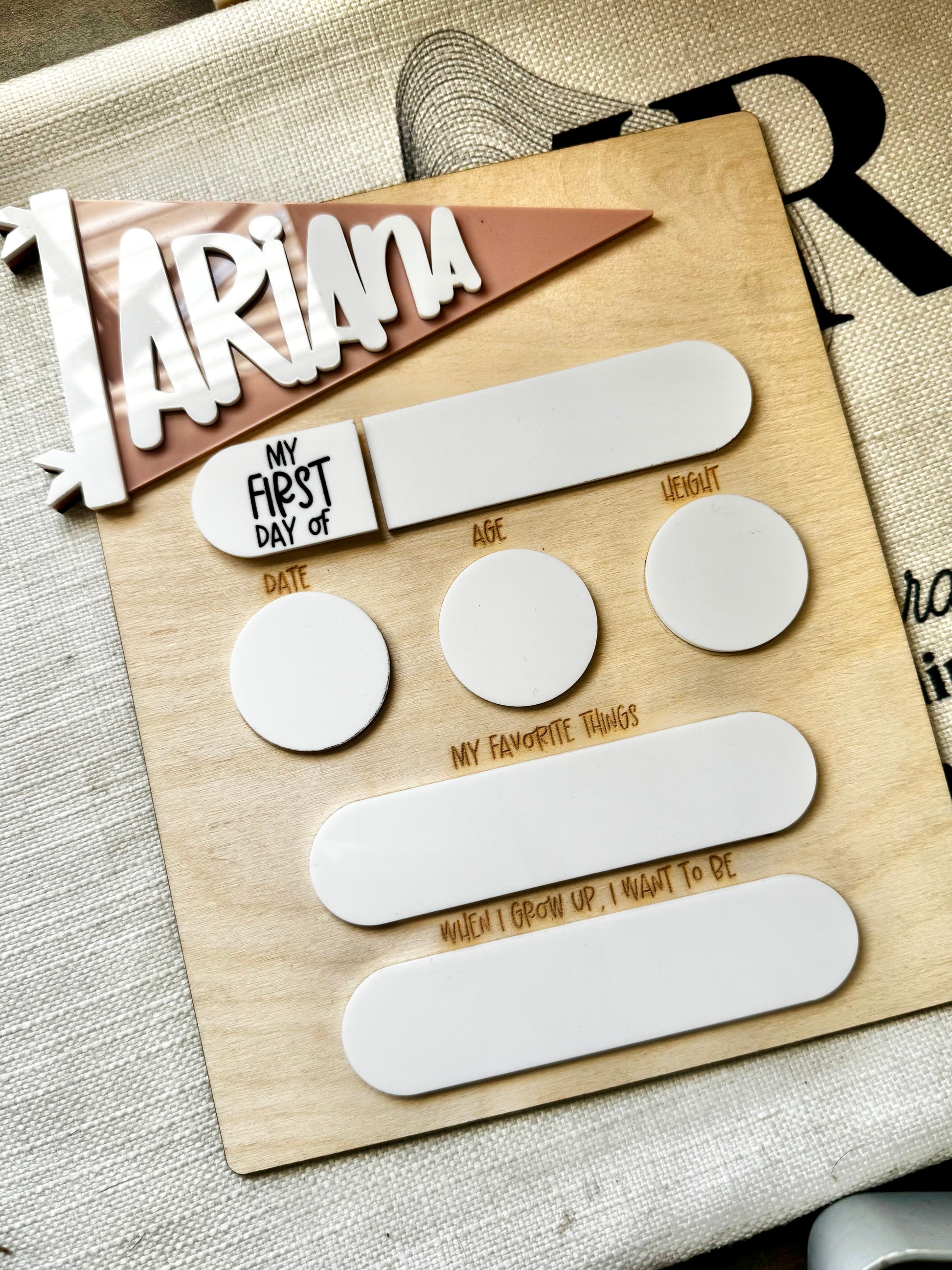 All board purchase include a dry erase marker and interchangeable space for first/last day of school. Back to school board measures about 10-11 inches in height. Please add custom name to order notes at checkout.