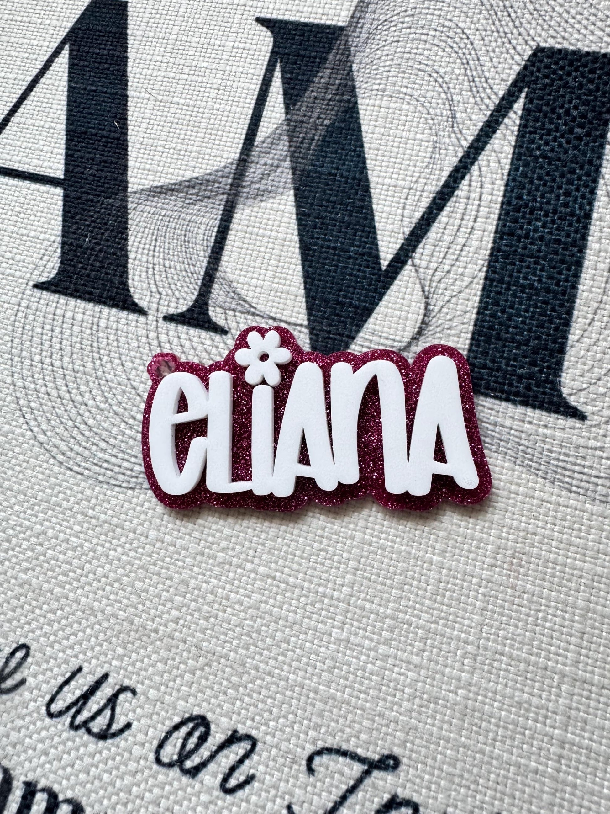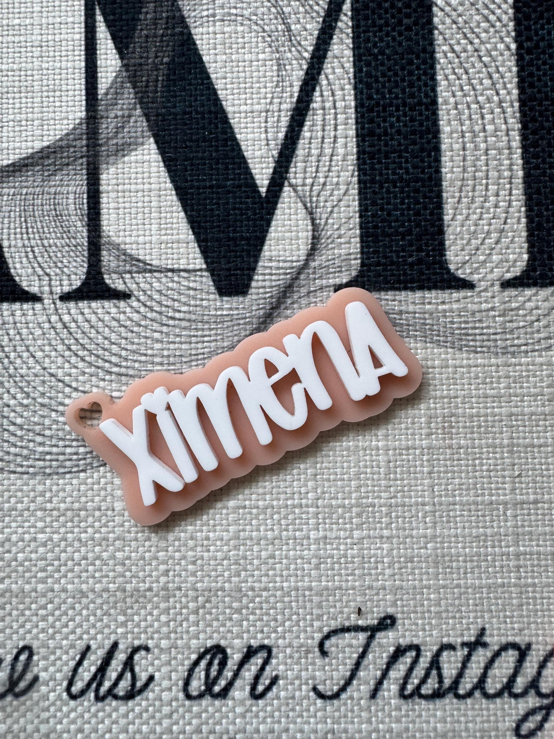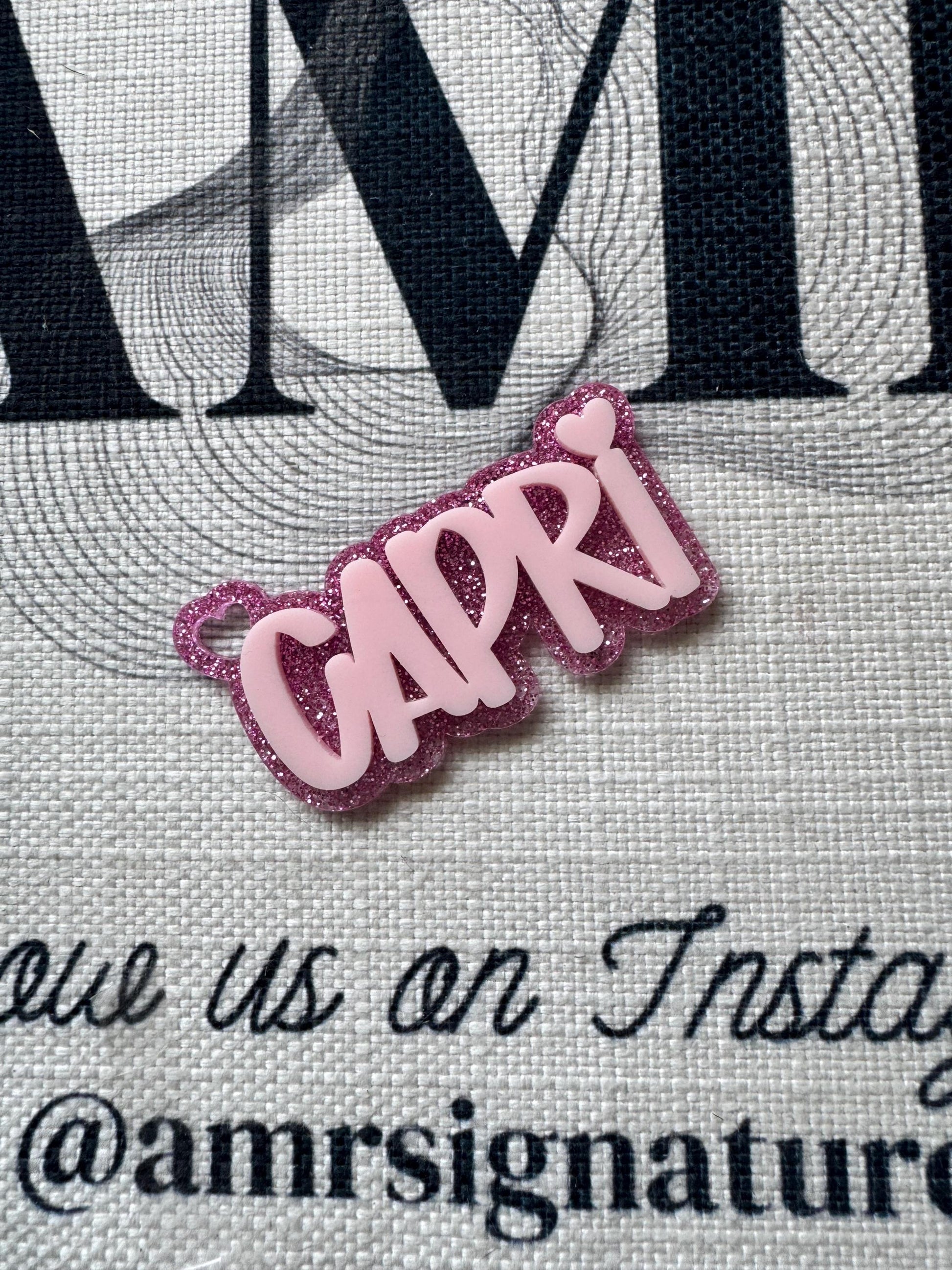 Personalized name keychain or backpack tag. Choose your favorite color and we’ll design it. Please keep in mind the height of the name will vary with each name depending on how long the name is. Most are made 3 inches in length. Any questions? Message us! Thank you!