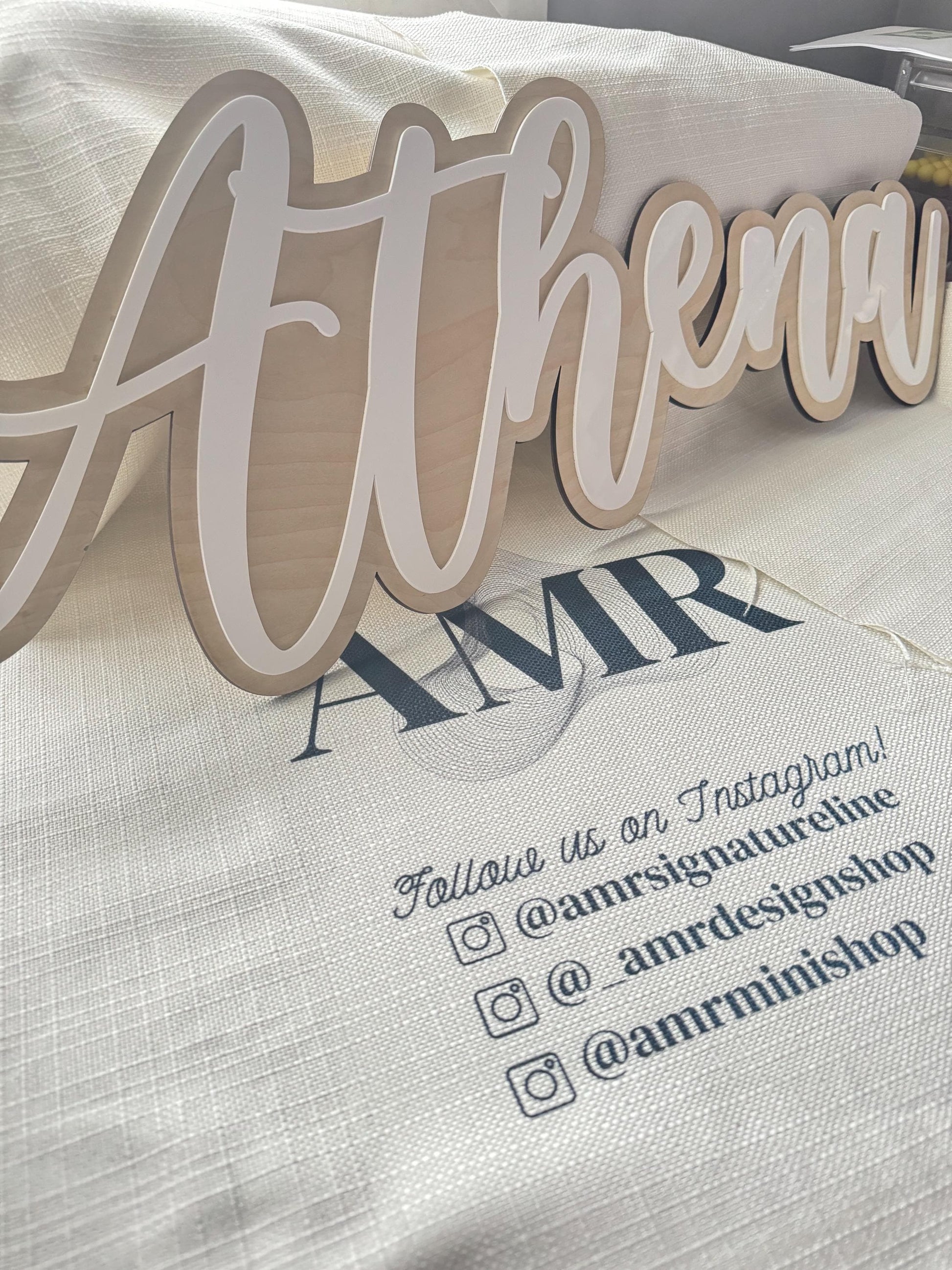 Wood and acrylic combination name sign. Crib decor, room decor for kids, graduation, party decor. Can be used for just about anything. Choose size, and name desired. Thank you for shopping small!